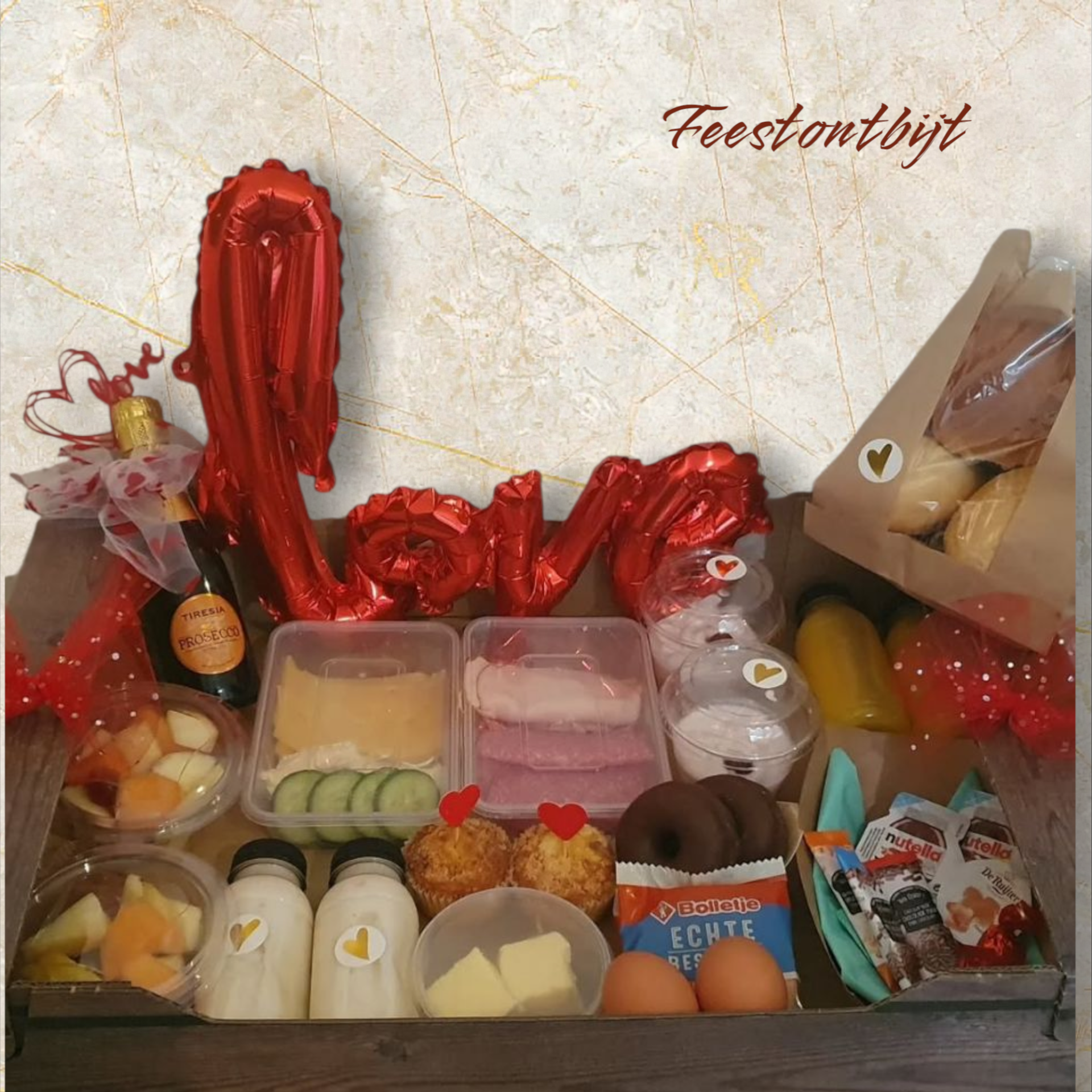 Een ontbijt vol liefde (en croissantjes, natuurlijk), verse broodjes, zachte zoetigheden en een vleugje romantiek ideaal om iemand even te laten smelten..