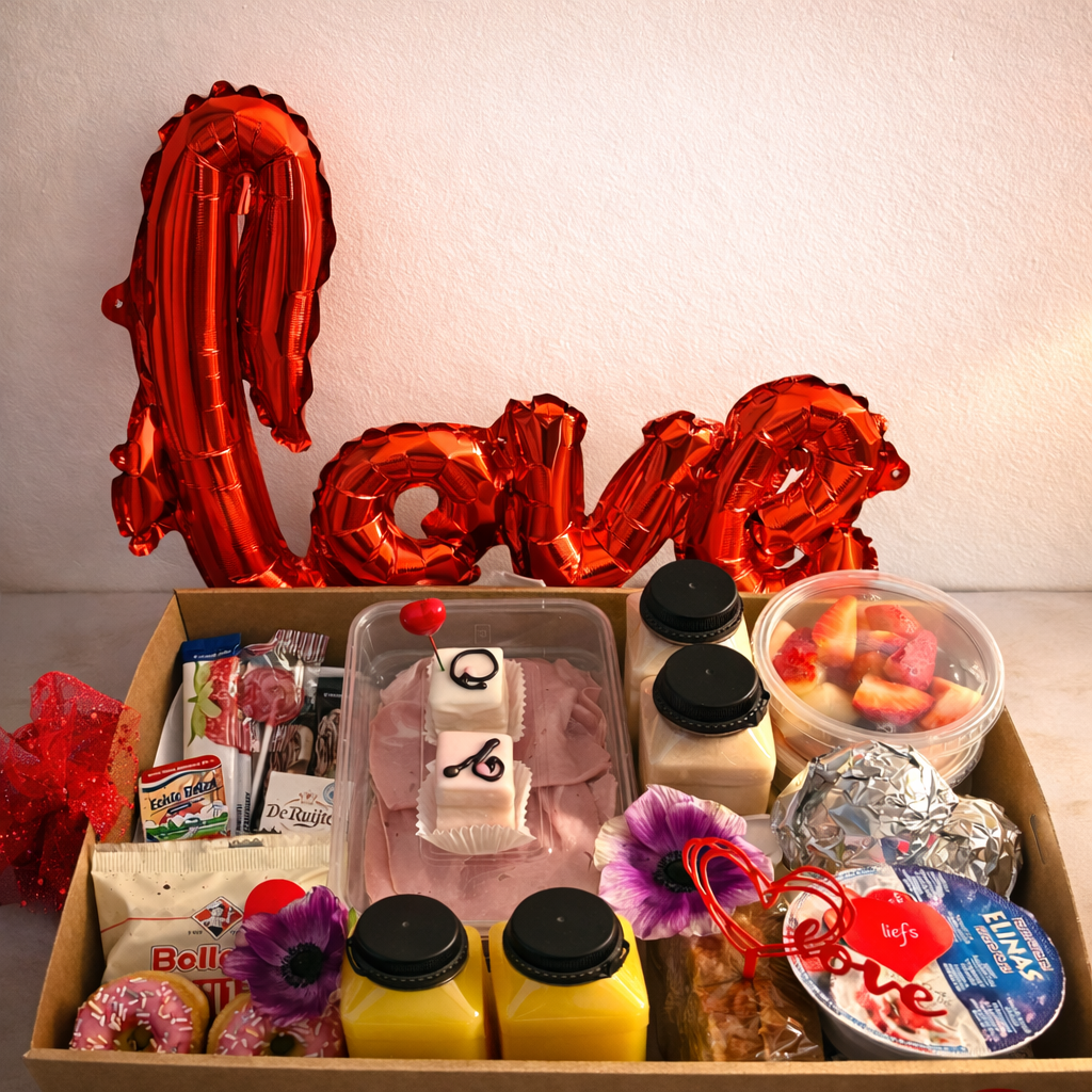 Samen genieten in alle rust en liefde 💕 Van heerlijke lekkernijen tot sfeervolle details: wij zorgen voor een warme, romantische start van de dag. Een lief kaartje of kaarsjes erbij? Geen probleem!